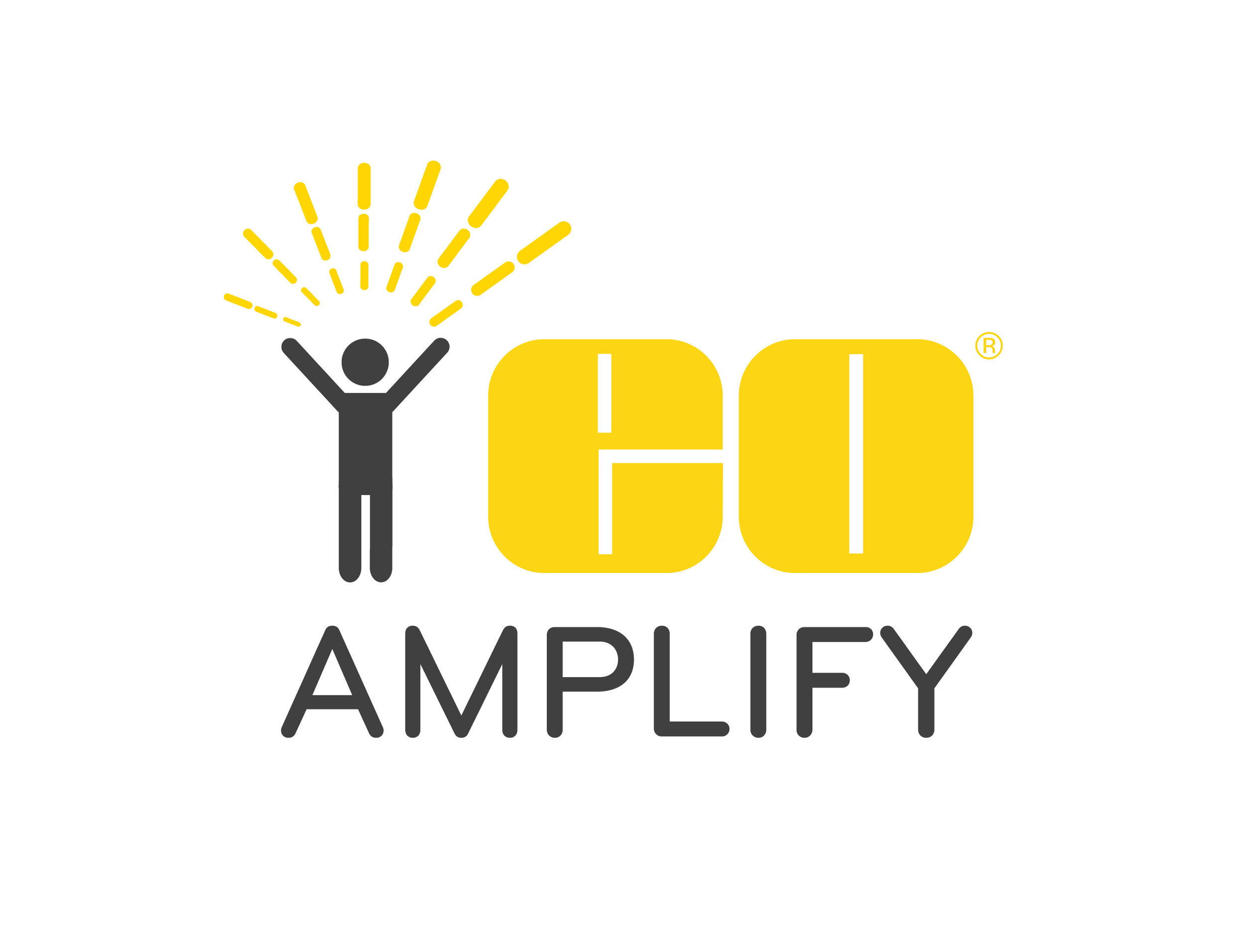 This logo utilizes the Edmund Optics yellow and another color commonly used in our designs, a dark gray. “AMPLIFY” is in a rounded, san-serif font that both fits the corporate environment and appears welcoming. The person has their arms open and raised in an expressive posture with a burst made of seven lines (one for each aspect of AMPLIFY). This logo is used in all official AMPLIFY communications, webpages and activity promotions.