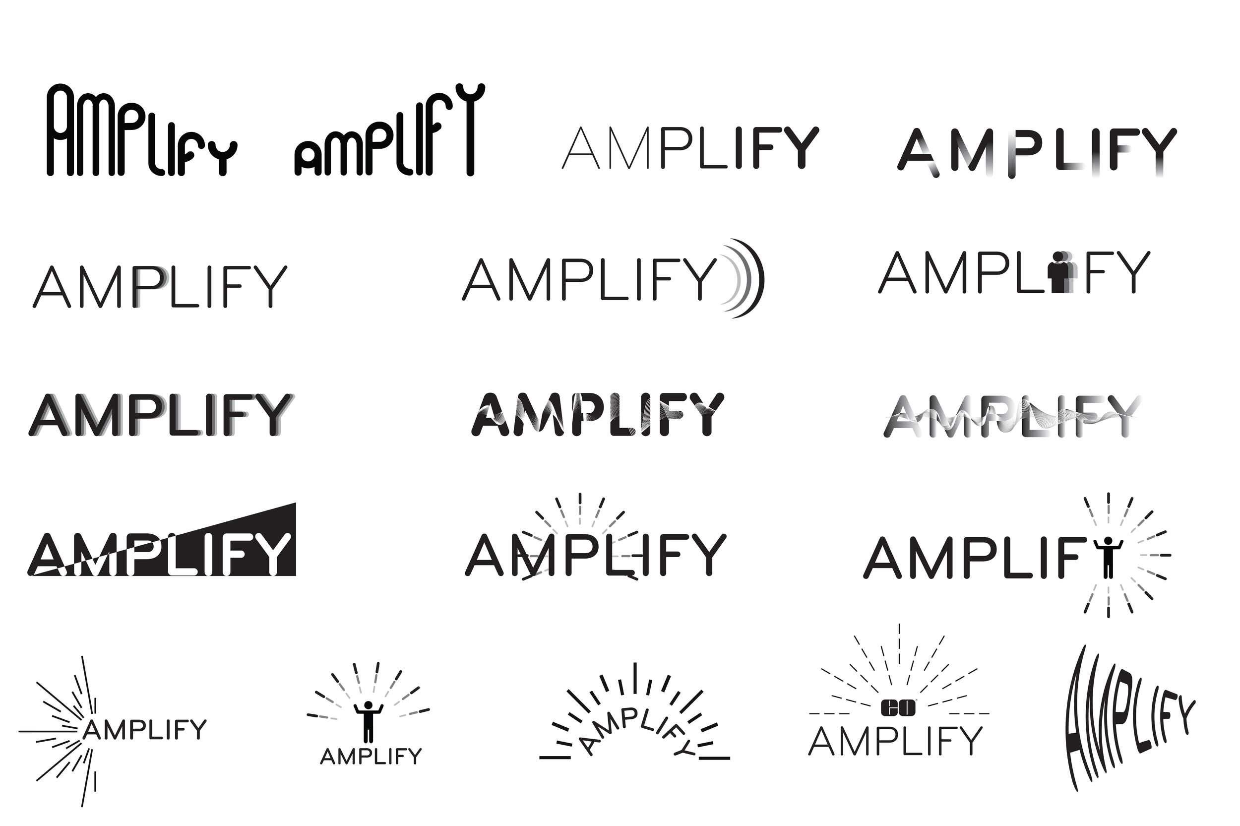 Logo sketching began exploring the word “Amplify,” meaning to increase the volume of something or enlarge it. The idea of sound waves, differences in scale, and “bursts” came into play.